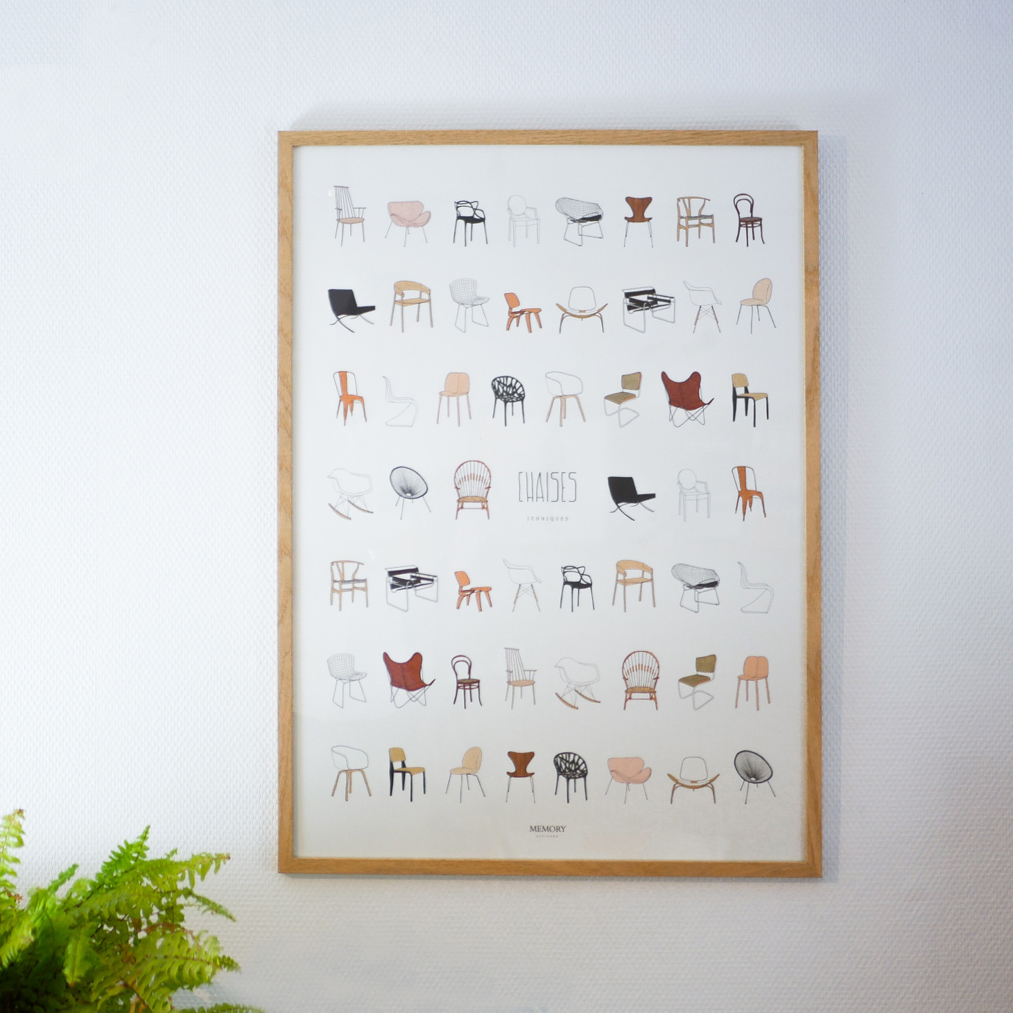 Ce cadre en bois naturel accueille vos affiches de 50x70 cm. Les baguettes sont en frêne massif, teinté chêne clair, une teinte naturelle qui se marie parfaitement avec des affiches claires ou foncées. La vitre de protection est en verre pur, traditionnellement utilisé dans l’encadrement, plus résistant aux rayures que le plexiglas.
