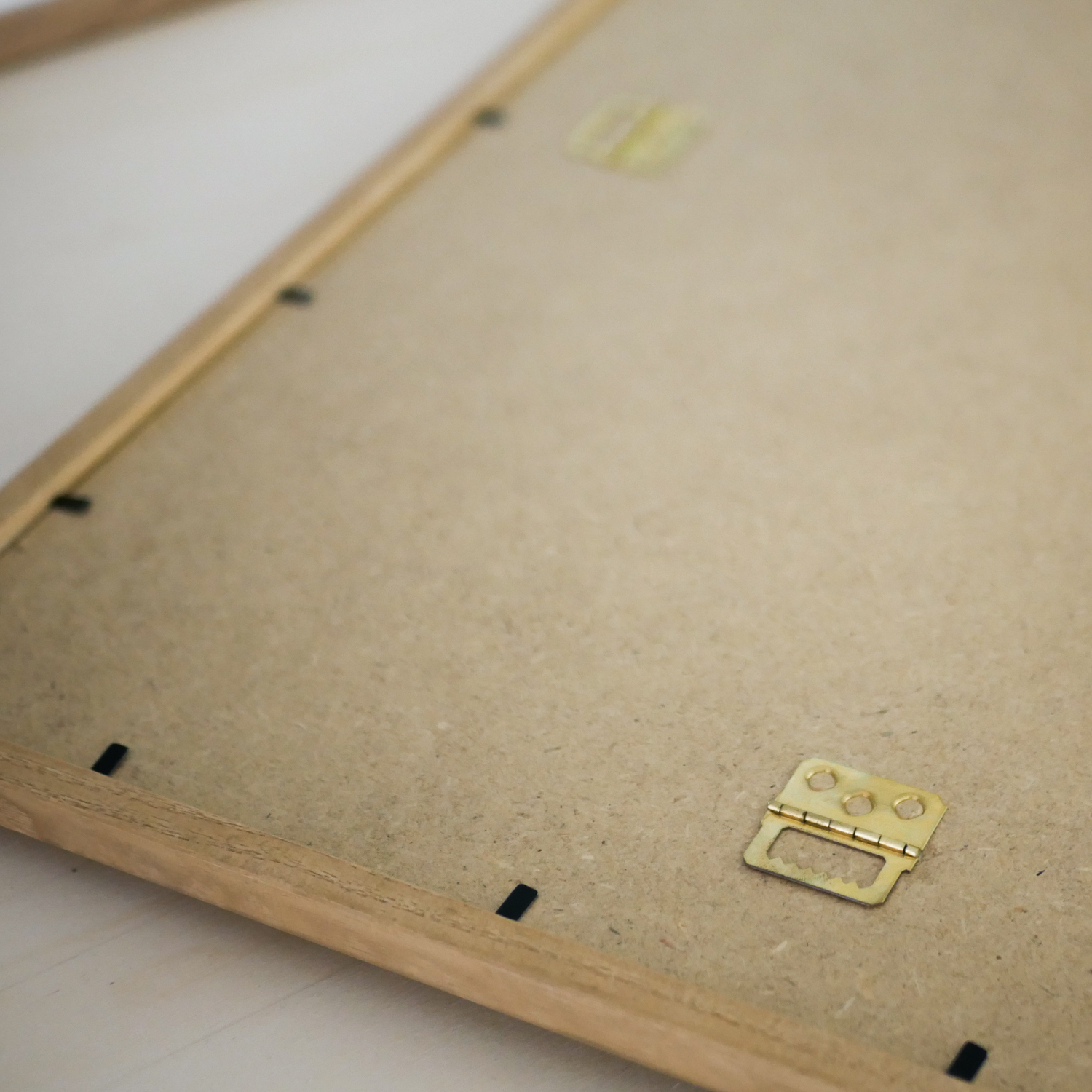 Au verso, le fond de cadre en médium est tenu par des agrafes métalliques et 2 accroches permettent de suspendre facilement le cadre tant à l’horizontale qu’à la verticale.