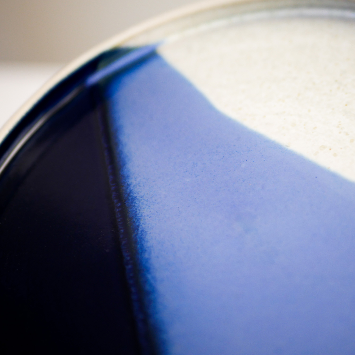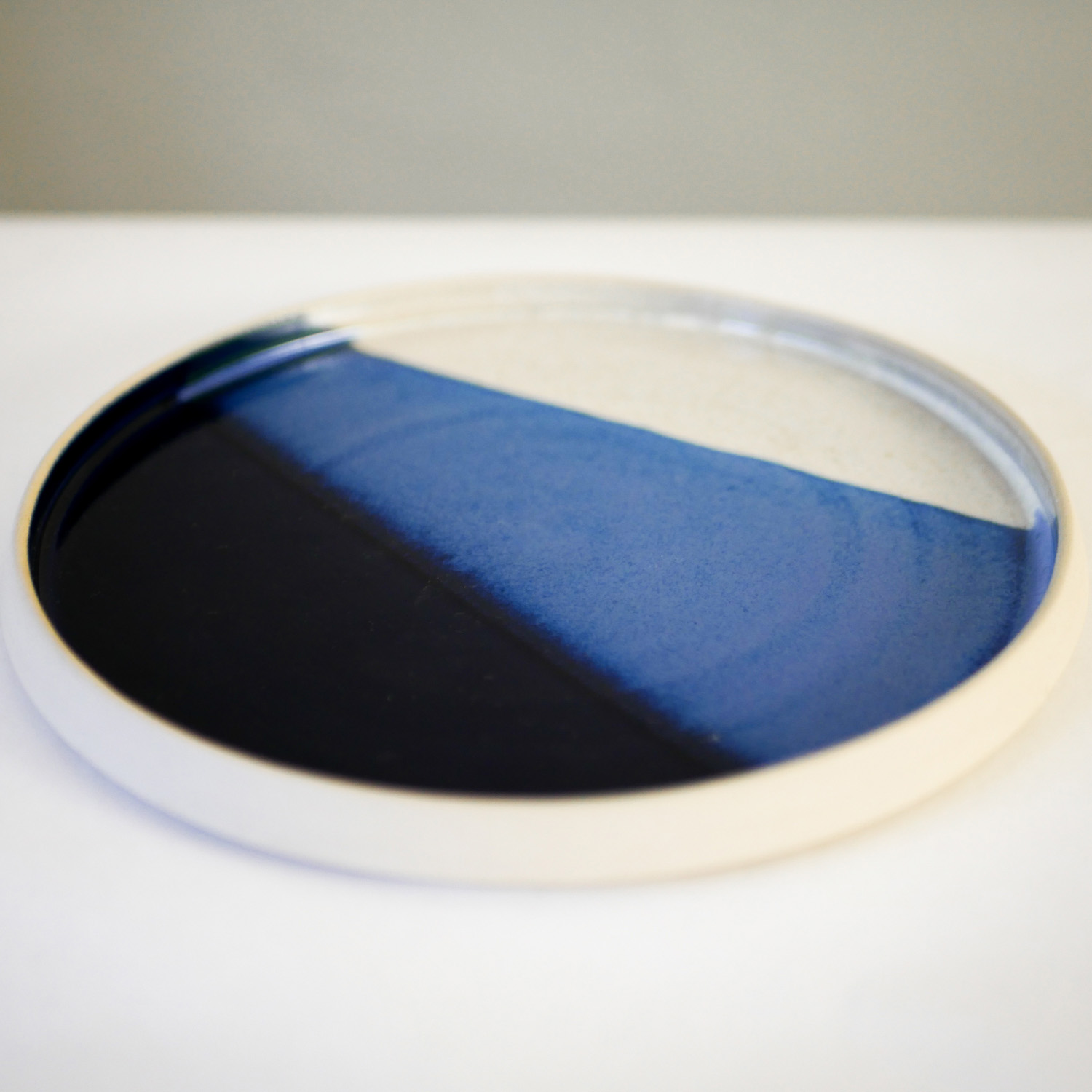 La surface de cette petite assiette est émaillée en surface pour favoriser l’esthétisme et le confort d’usage, quant à la partie inférieure de l’assiette, elle est volontairement laissée brute pour faire apparaitre la beauté du grès et sa fabrication artisanale.