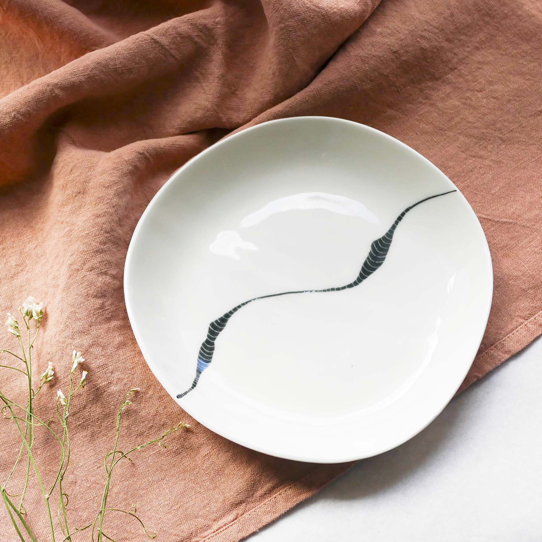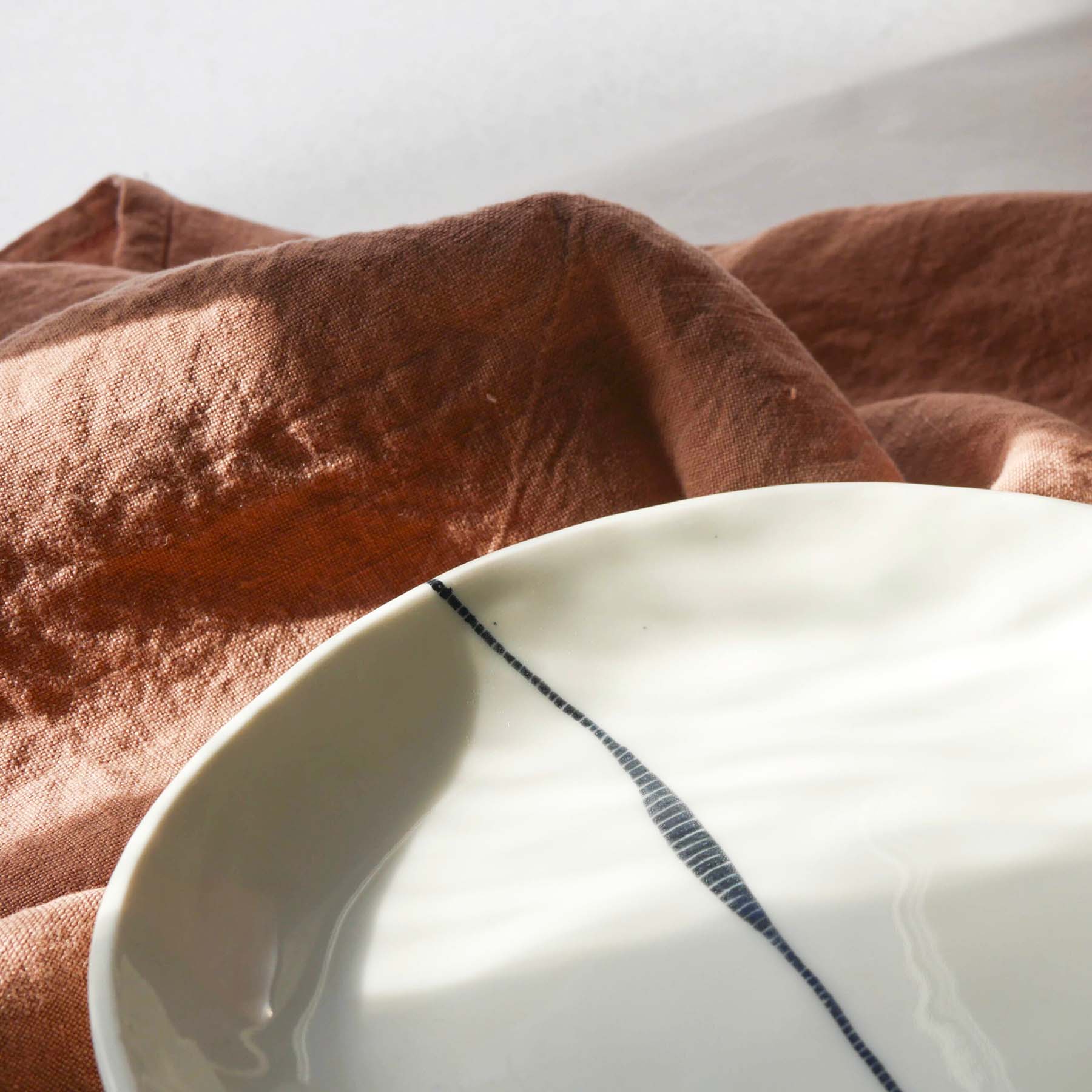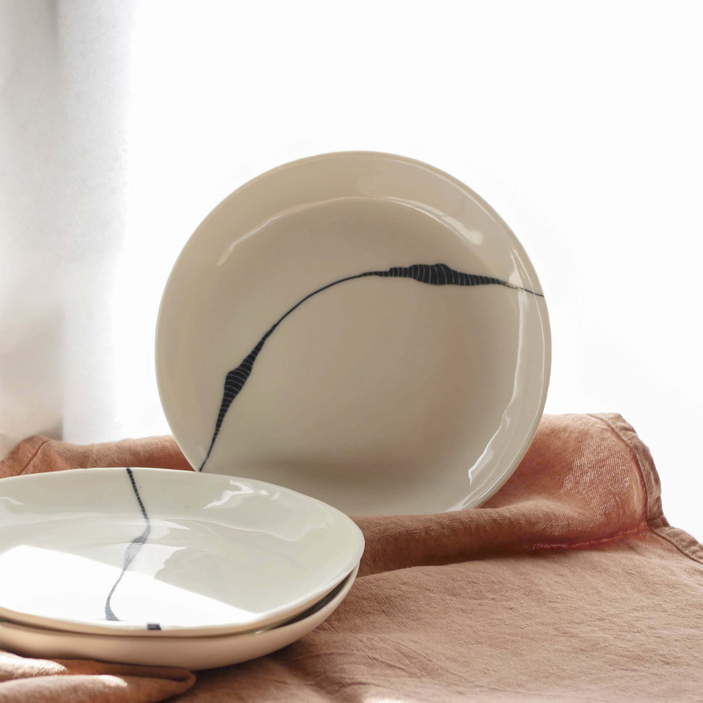 Réalisée à la main une à une par la céramiste Margot Coville dans son atelier nantais, chaque pièce est unique et offre le charme de la pièce artisanale. En effet, les bords irréguliers apportent un complément d’âme à une table joliment dressée.