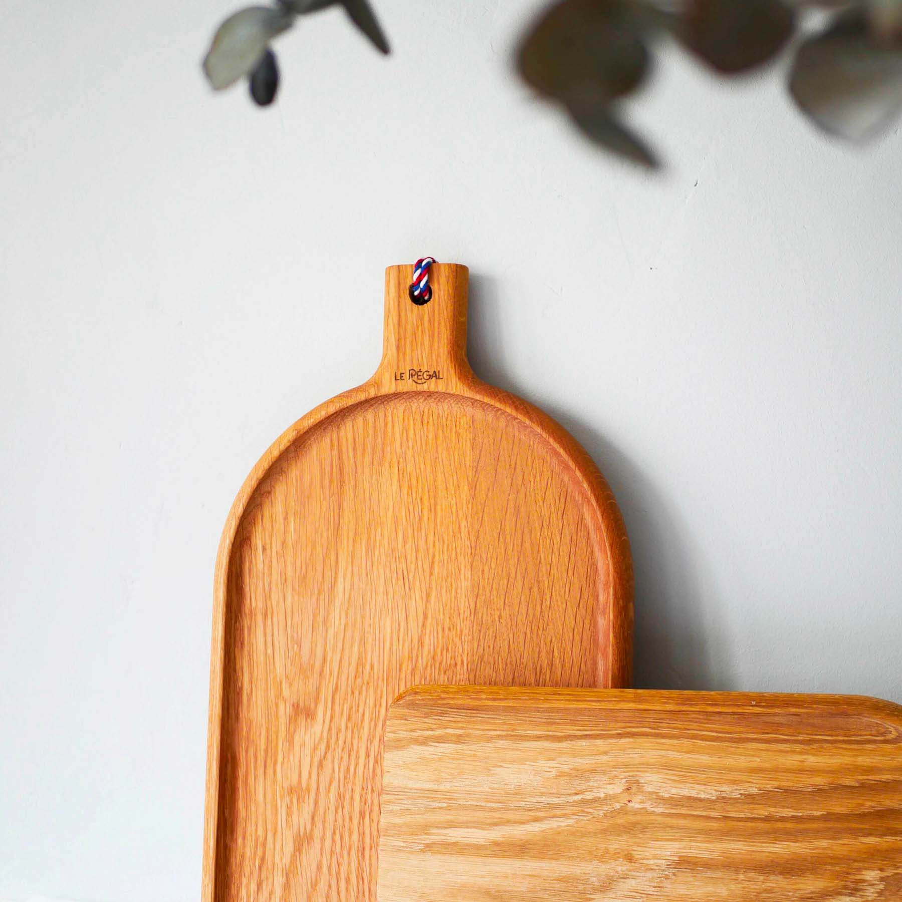 Chaque pièce de la collection Le Régal est estampillée à la façon d’un millésime précisant la provenance du bois et son année de fabrication. Aussi, chaque planche est fabriquée en chêne français et traitée à l’huile de pépins de raisin.