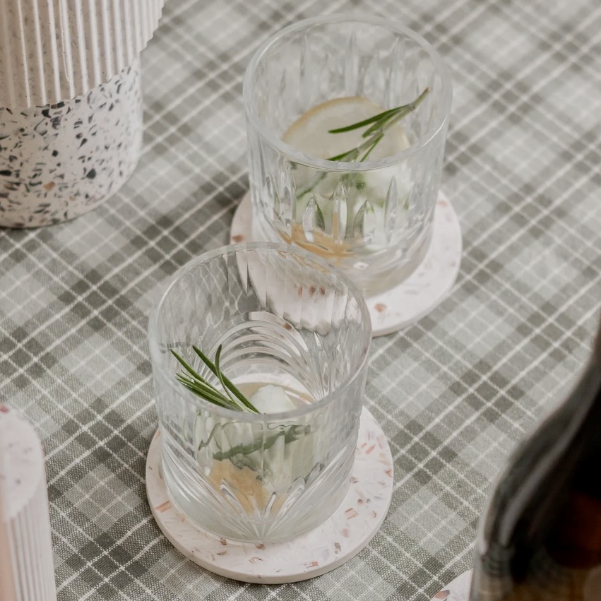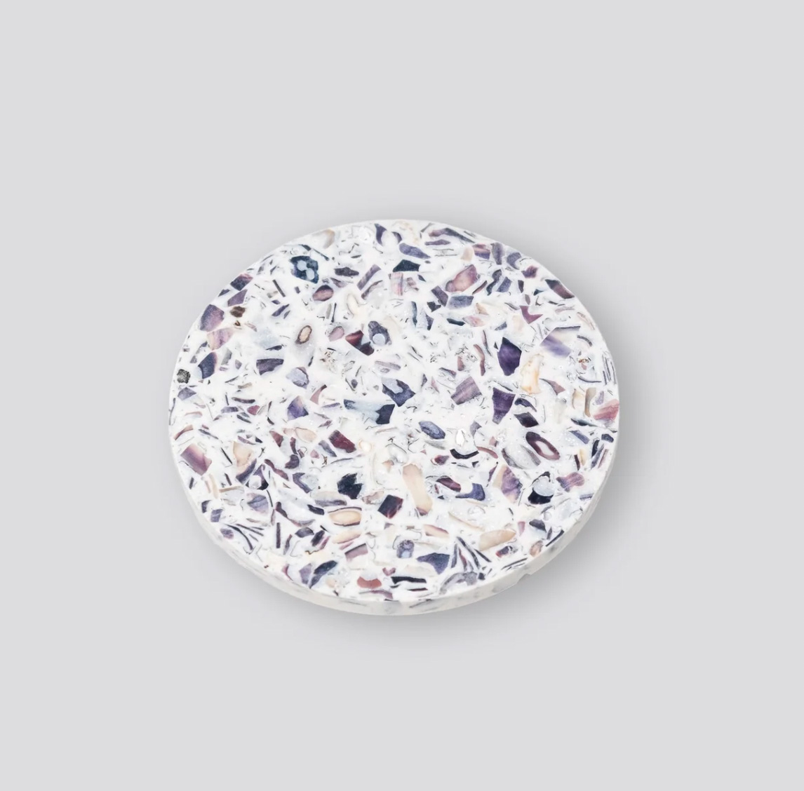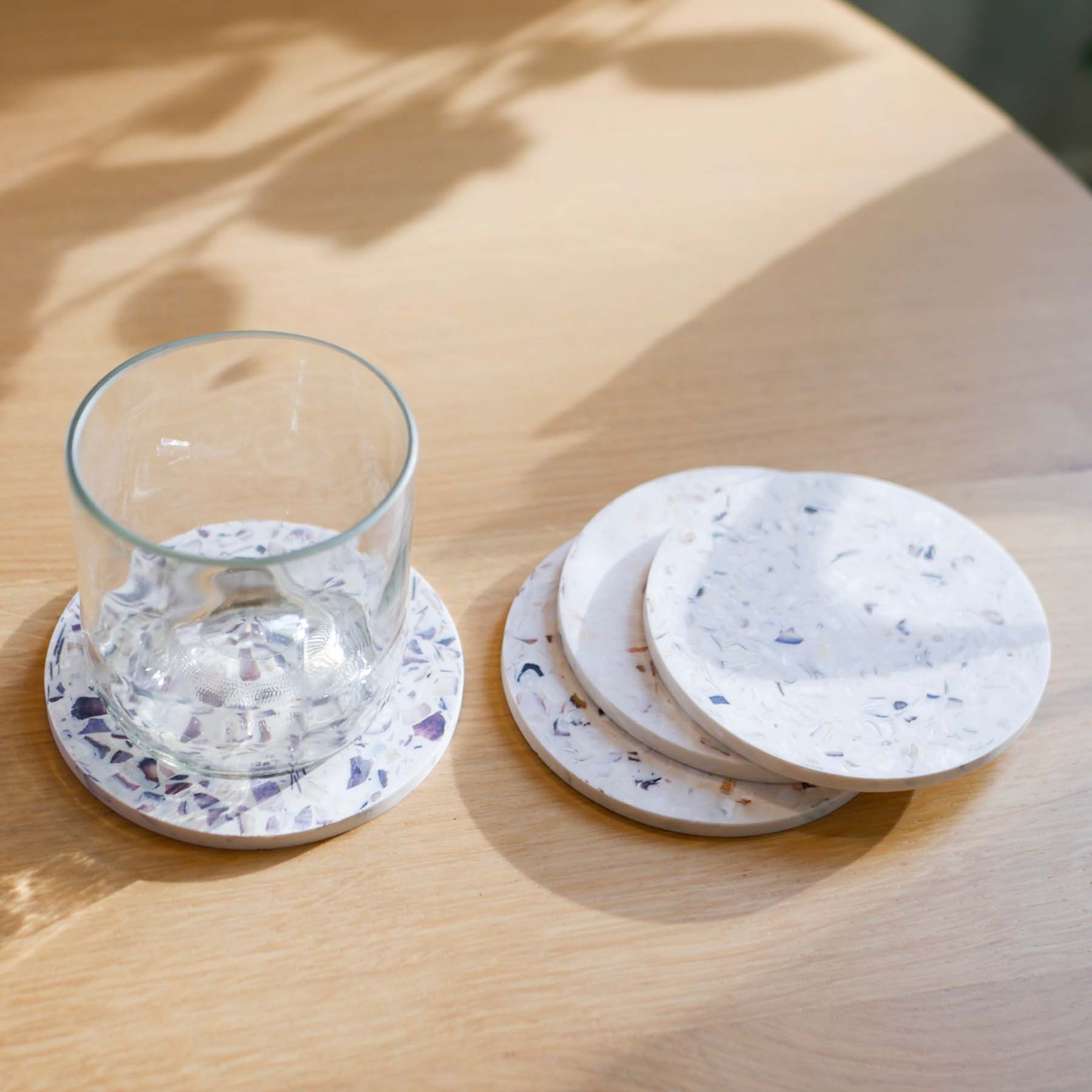 Ce lot de dessous de verre fabriqué à partir de coquillages recyclés et d’une matrice minérale seront des compagnons parfaits pour accueillir tasses et verres à tous moments de la journée.