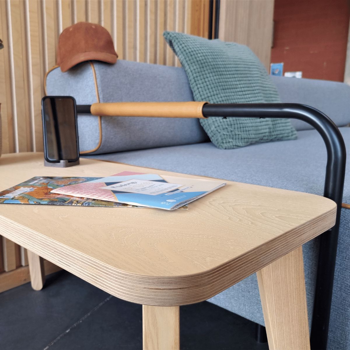Le banc Jomon existe également avec un revêtement d’assise en linoléum biosourcé coloré:
