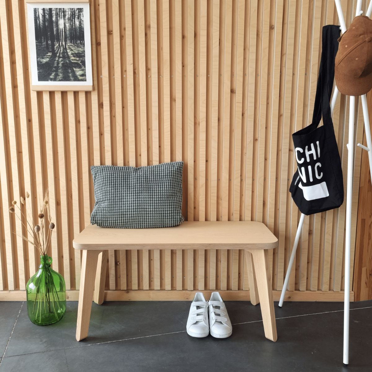 Banc en bois aux lignes sobres pour une assise pratique et efficace.