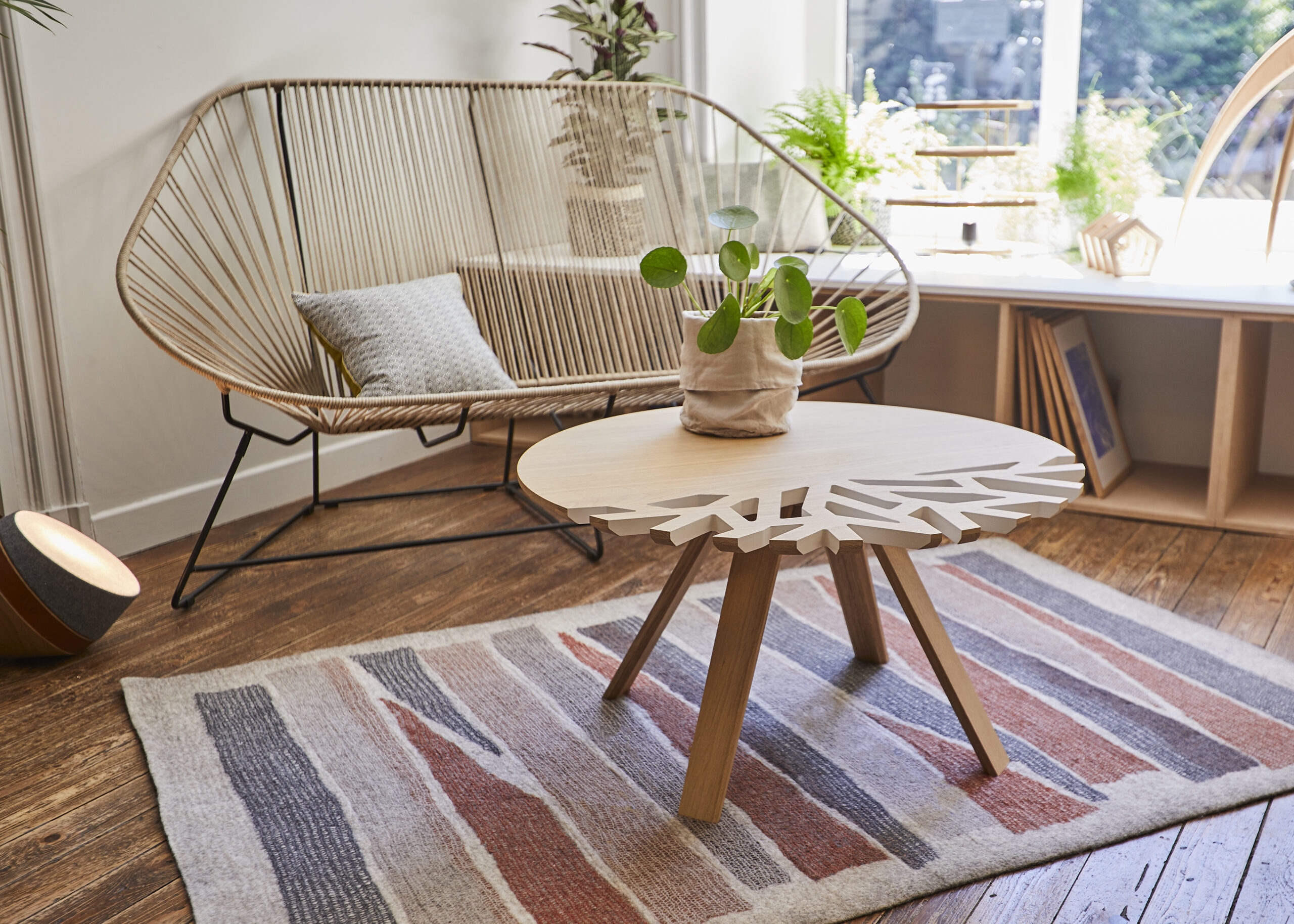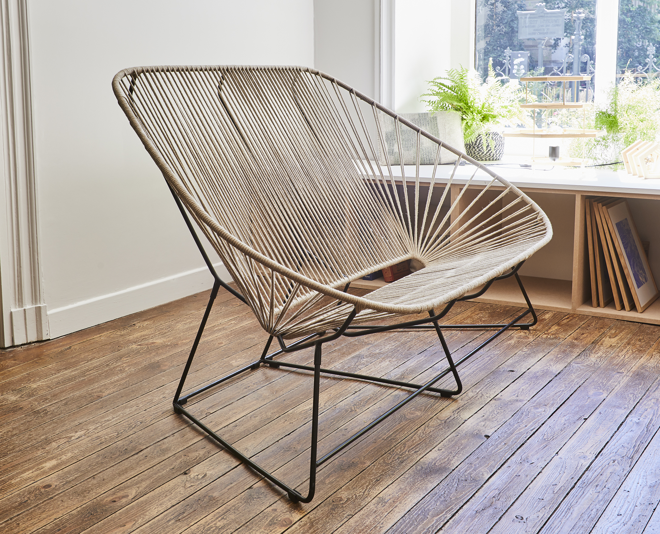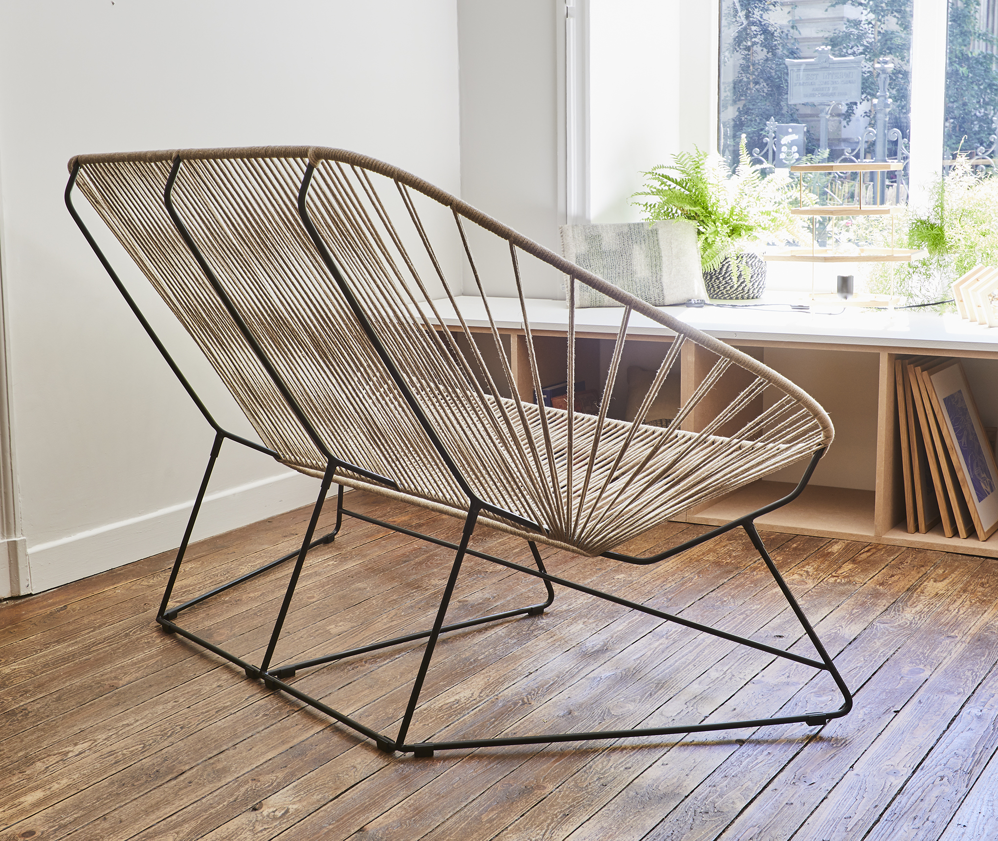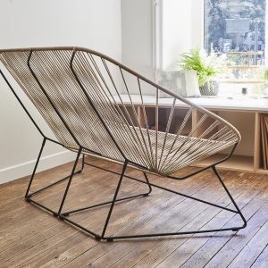 L’INATELIER aime sa transparence qui laisse passer la lumière et habille l’espace avec légèreté. Côté confort, la tension du tressage en lin est parfaitement dosée pour offrir de la tenue certes, mais également une sensation de moelleux sans qu’il ne soit nécessaire d’ajouter des coussins. Enfin, le dossier du canapé Acapulco est suffisamment haut pour permettre de reposer la tête.