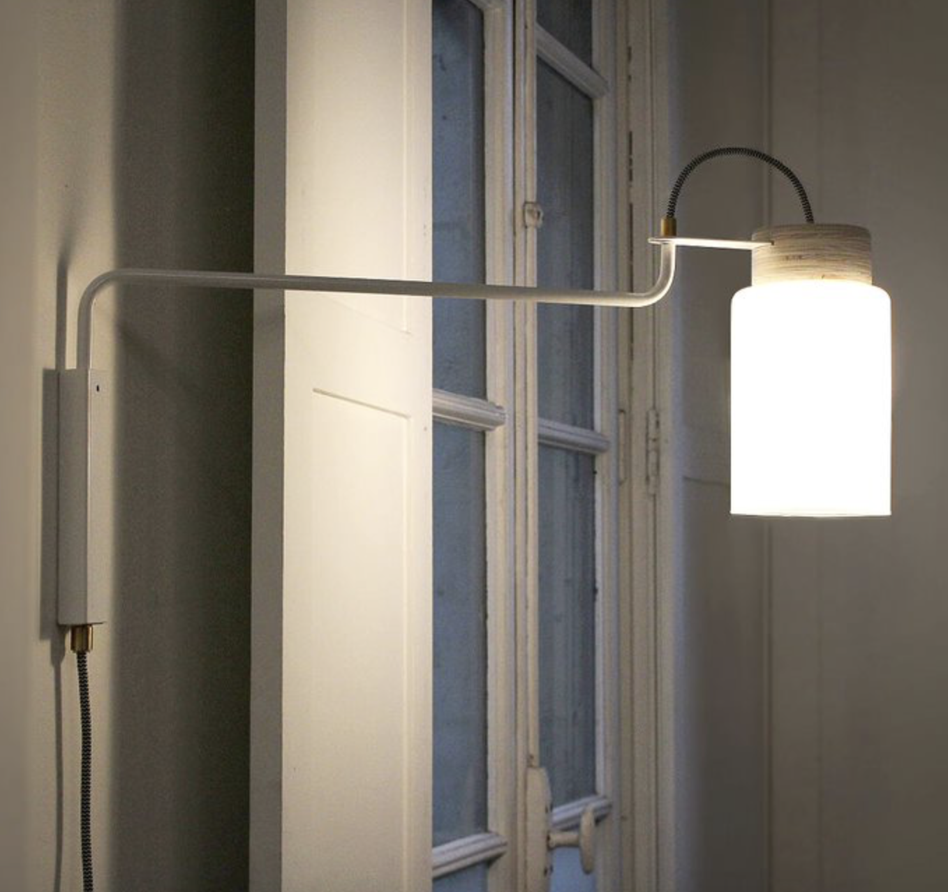 Applique Alt Wood 03 au style discret et naturel, créée par un studio design écoresponsable et engagé. Le verre dépoli apporte une lumière douce, en harmonie avec le support en bois tourné. Le système de fixation est simple et élégant. Le fil électrique est en textile.