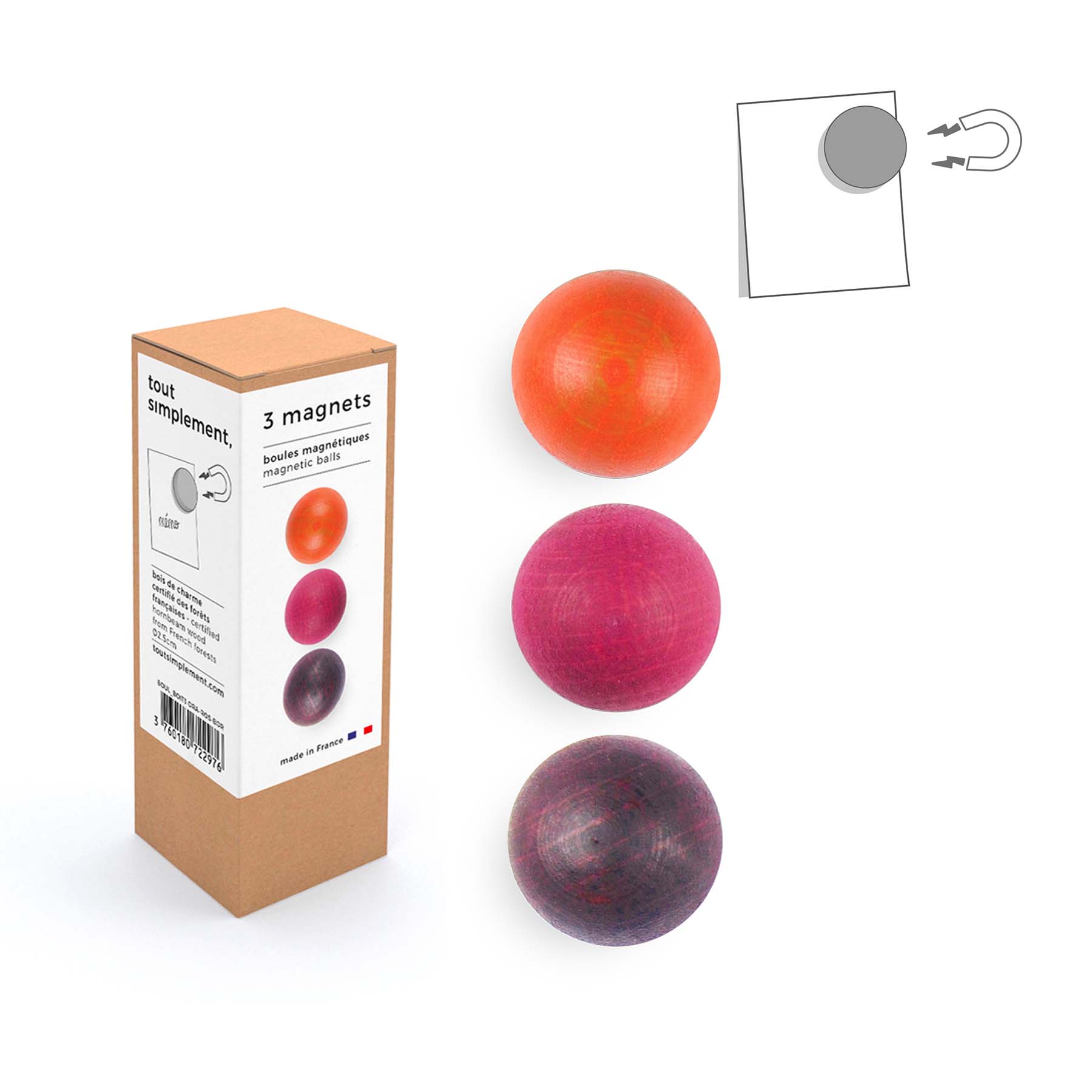 Ce lot d’aimants est fabriqué par la maison « »Tout simplement design » » dont les créations en matériaux nobles et éco-responsables sont issus des forêts du Jura. Dans cette même démarche, « »Tout simplement design » » privilégie l’emploi local et le circuit-court (la plupart de ses fournisseurs situés en Franche-Comté).