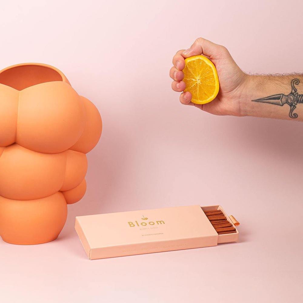 Bubble shell vous donne rendez-vous dans les contrées lointaines d’Orient. Un voyage mystique dans un jardin boisé, garni de noix de muscade à l’odeur envoûtante et de mandarines acidulées. Conçus comme un parfum – avec des notes de tête, de cœur et de fond – les bâtons d’encens Bloom sont subtils et légers. Chacun d’entre eux appelle à la détente et au calme sans entêter tout en purifiant l’espace.