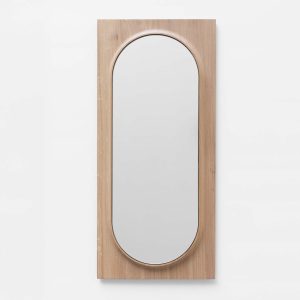 Le chêne naturel est creusé dans la masse tout autour du miroir pour ne laisser qu’un fin liseré de bois. Sobre et élégant, peu encombrant, le miroir Circuit embellit une entrée, un salon, une chambre.