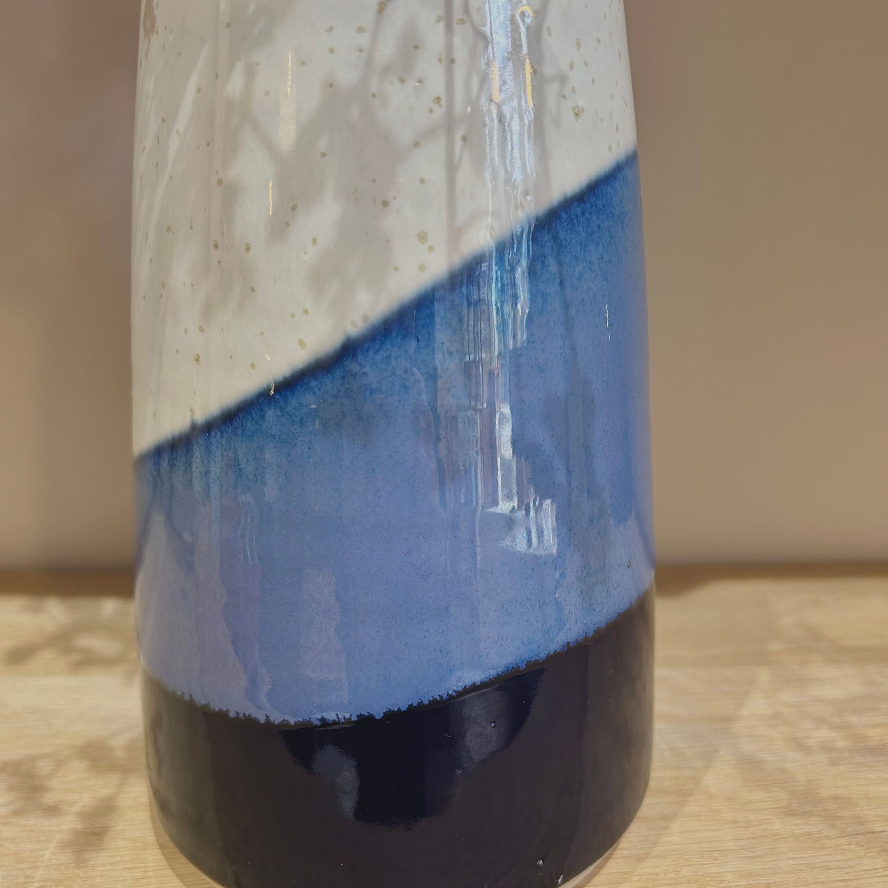 Ce vase en grès tourné et émaillé bleu et blanc nacré est une pièce unique qui saura sublimer votre intérieur. Il est parfaitement adapté pour accueillir vos plus beaux bouquets de fleurs fraîches, mais également pour mettre en valeur vos compositions de fleurs séchées, ajoutant une touche d’élégance et de naturel. Sa teinte bleu nacré, délicate et lumineuse, combinée à son caractère brut, apportera une atmosphère chaleureuse et pleine de gaieté à votre décoration. Idéal pour les amateurs de design artisanal, ce vase incarne un mélange subtil entre modernité et authenticité.