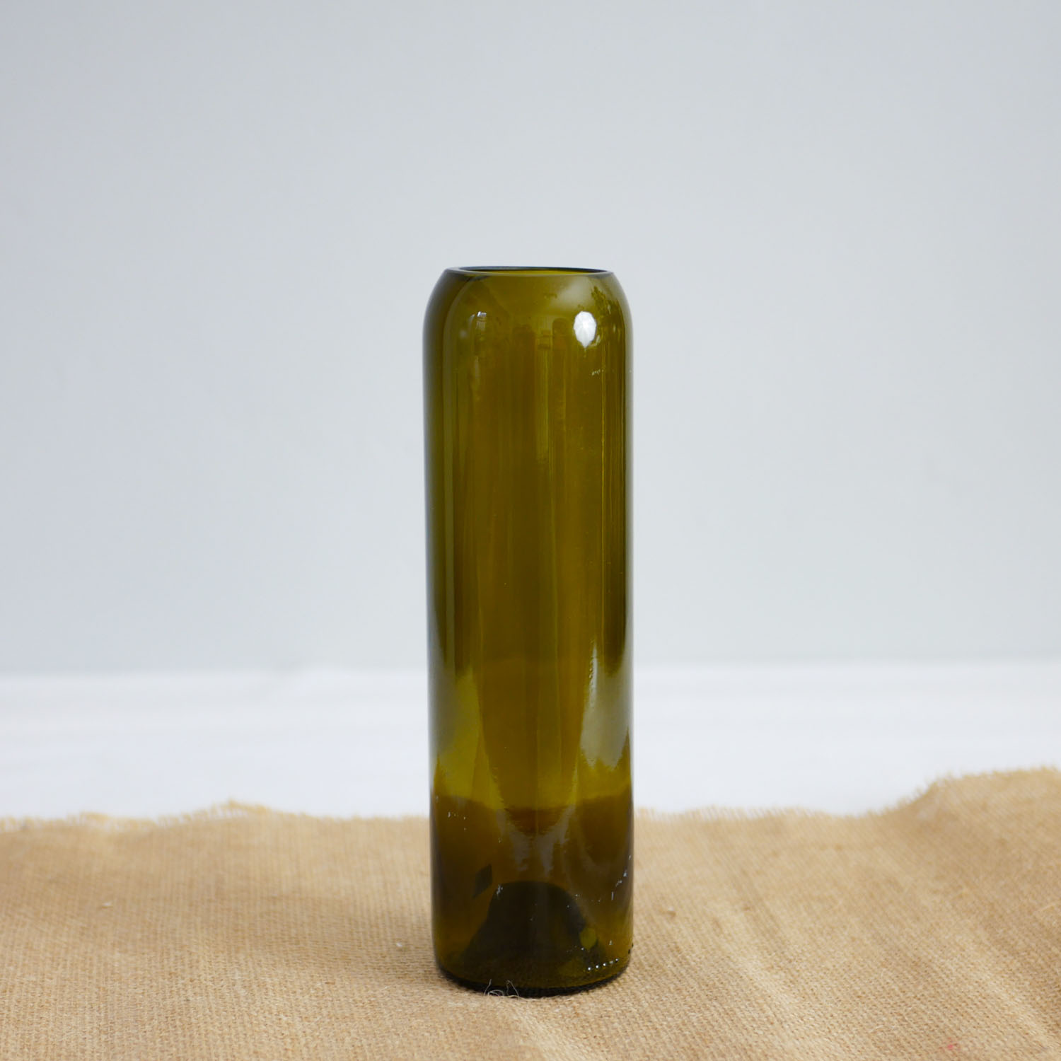 Son verre est unique, il raconte une histoire, car en effet, il est fabriqué à partir d’anciennes bouteilles de vins, retravaillées, poncées et repensées pour leur donner une nouvelle vie. Nous apprécions particulièrement cette démarche de surcyclage, vraie procédé éco-engagée.