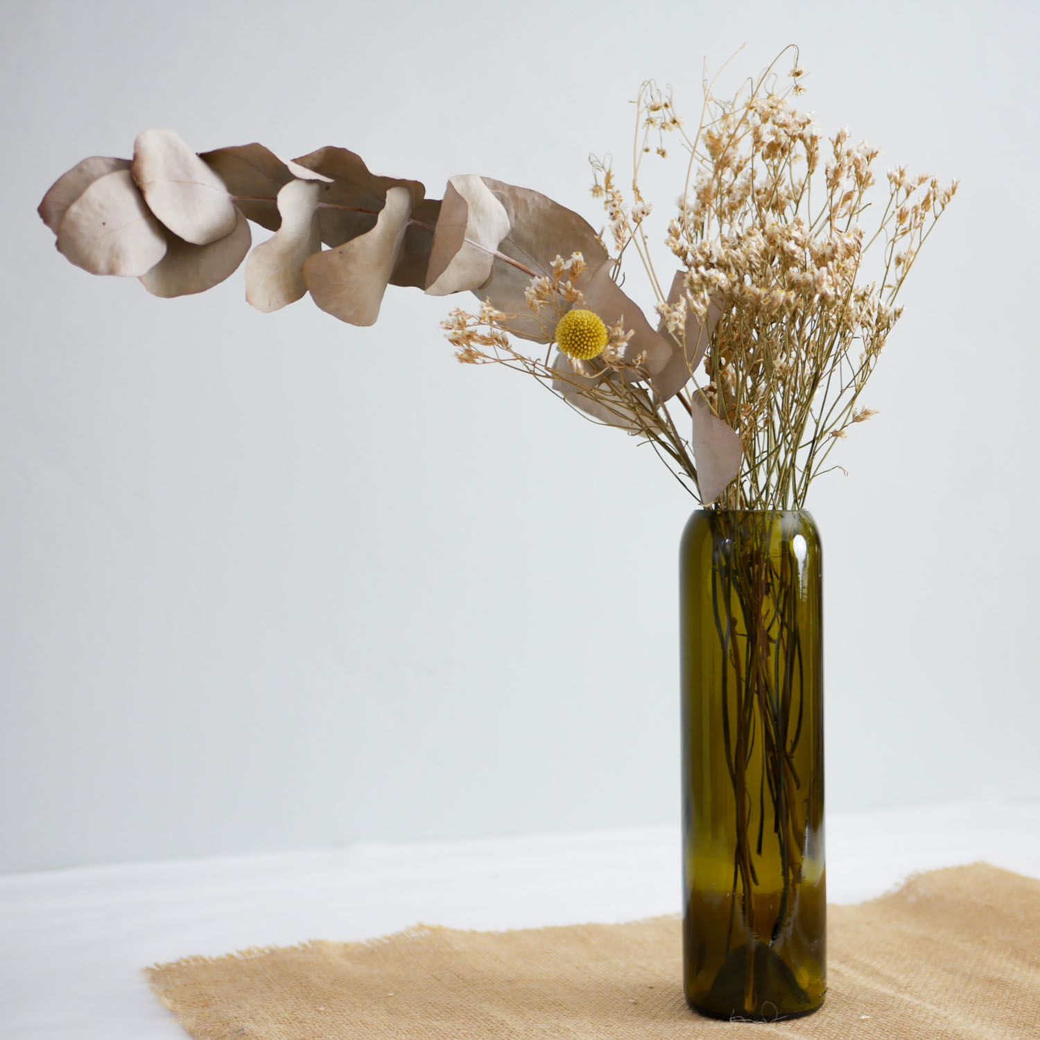 Le vase en verre recyclé brun se combine parfaitement avec le vase en verre recyclée vert avec qui il formera un parfait duo.