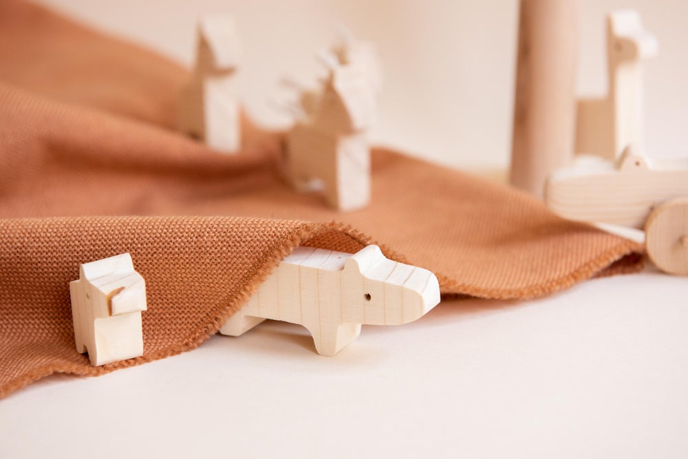 Un ensemble de personnages en bois naturel, garanti sans plastique.