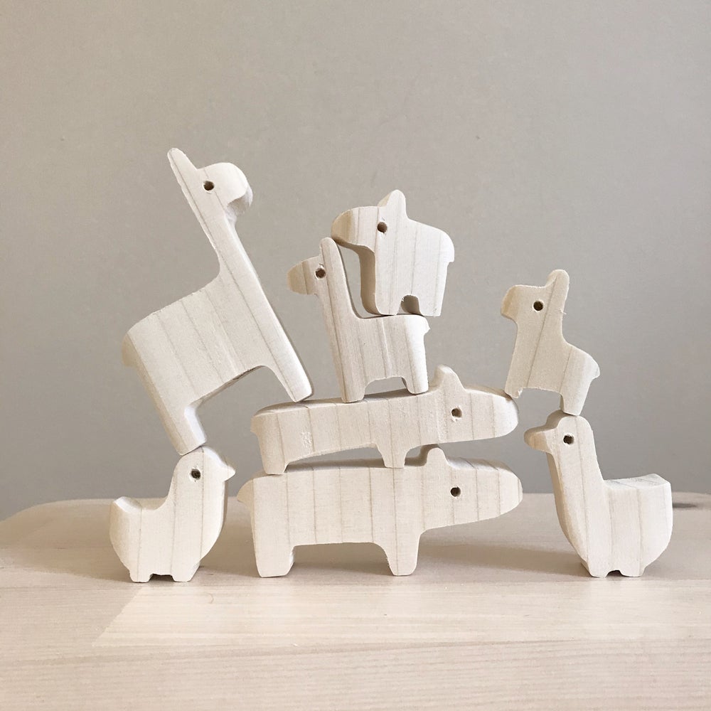 A empiler, exposer, ou pour s’inventer des histoire, l’ensemble d’animaux en bois Zoo est un régal pour les yeux comme pour l’imagination.