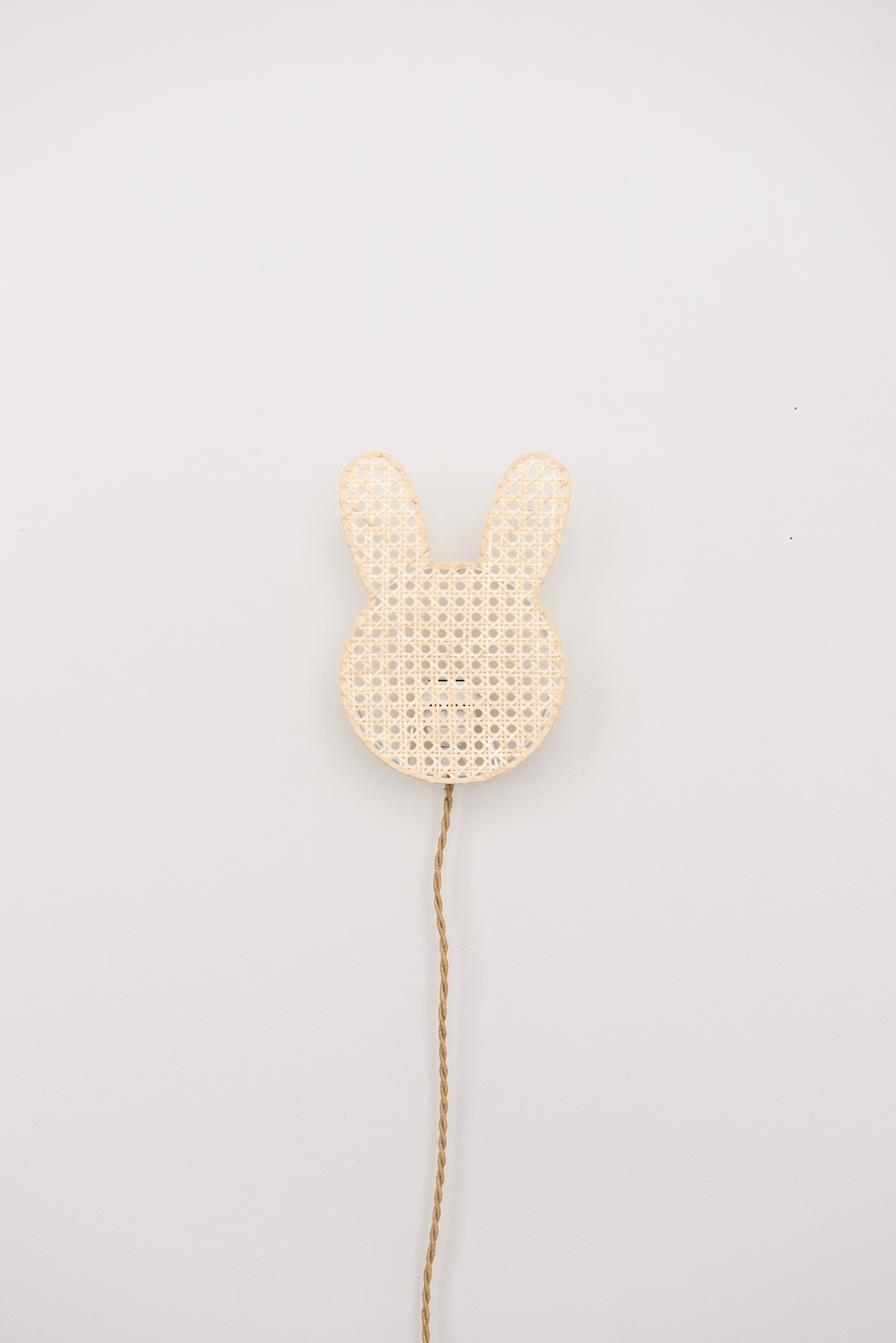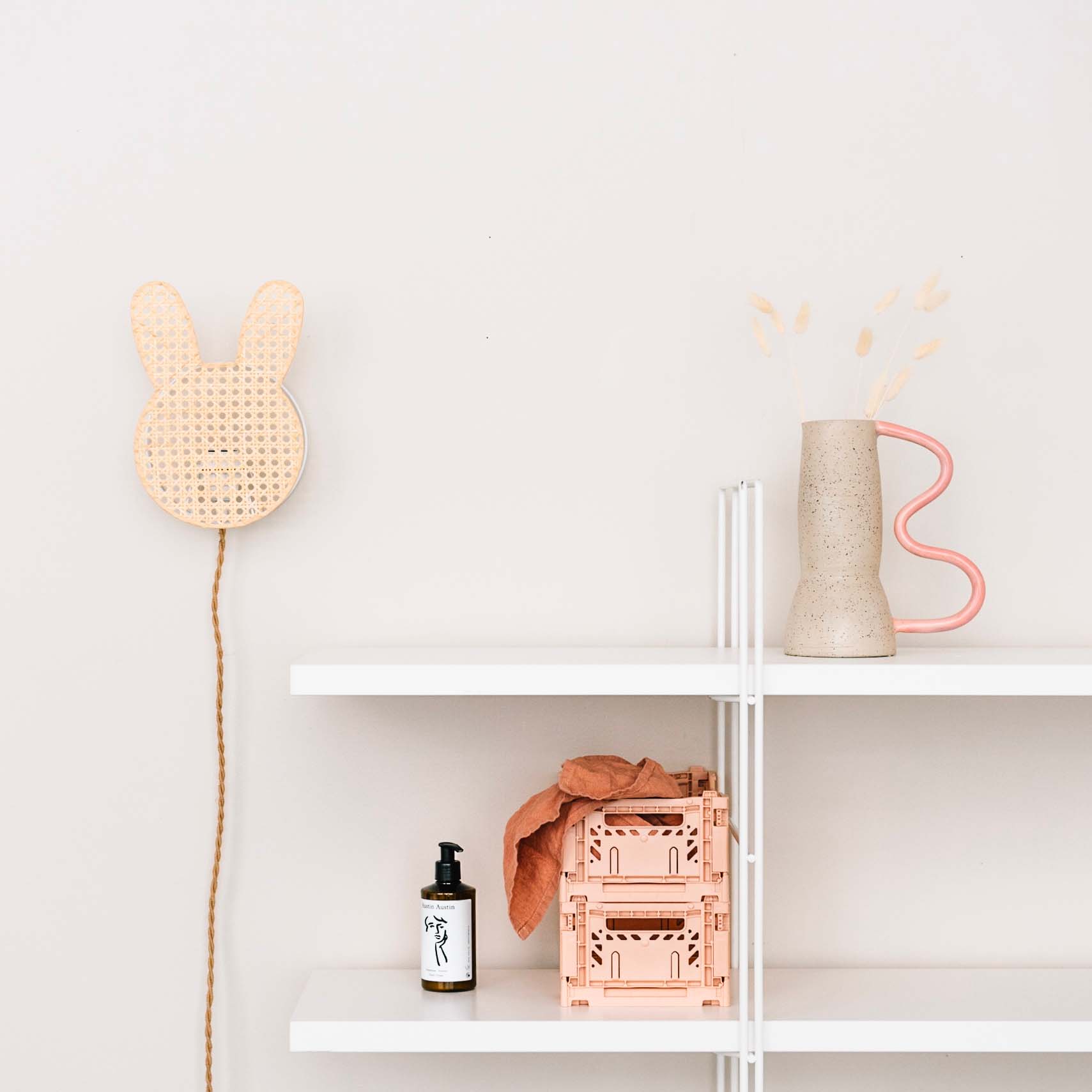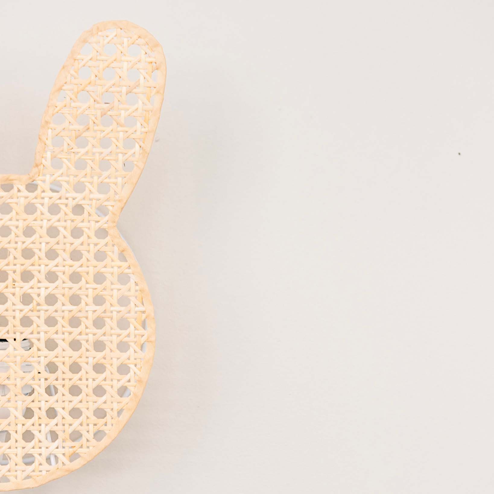Avec sa structure en cannage naturel, cette lampe lapin signée AN°SO Design apporte une touche douce et originale dans une chambre d’enfant.