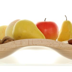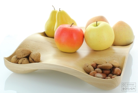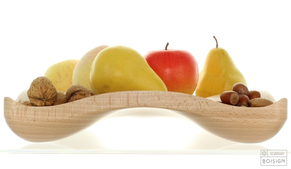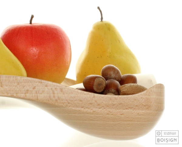 La houle à fruit permet de disposer les fruits sans qu’ils ne se gâtent les uns sous les autres. La forme, élégante et astucieuse, est le résultat d’un long travail d’usinage et ponçage manuel.