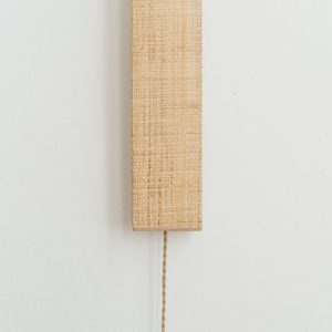 Proposée avec un câble en textile torsadé de 2m50 et interrupteur à main, cette lampe applique verticale en raphia peut aussi être livrée avec un branchement pour sortie murale. Pour cela nous contacter en cliquant ici