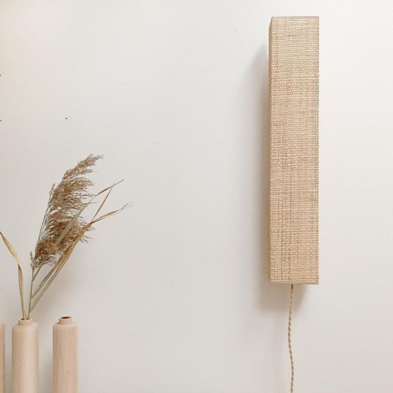 Applique verticale en tressage de raphia. Tout en hauteur, ce luminaire apporte une touche très nature et une lumière douce et apaisante. Avec une hauteur de 75 cm et une largeur de 14 cm seulement, l’applique de la maison Anso Design se positionne dans de nombreux espaces, autant dans une pièce de vie que dans un espace plus exigüe tel qu’une montée d’escalier.