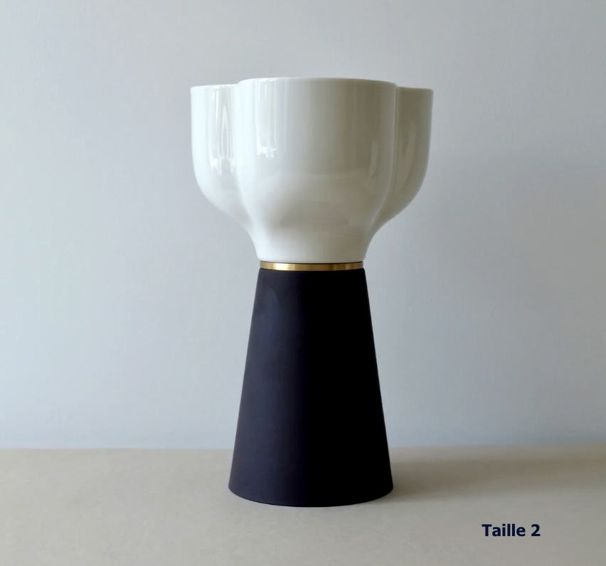 Lampe porcelaine noire et blanche de la collection Séléné allie élégance rétro et design intemporel. Son abat-jour émaillé en teinte terre brulée se marie parfaitement avec son pied brut en porcelaine, offrant un contraste raffiné entre matières nobles.