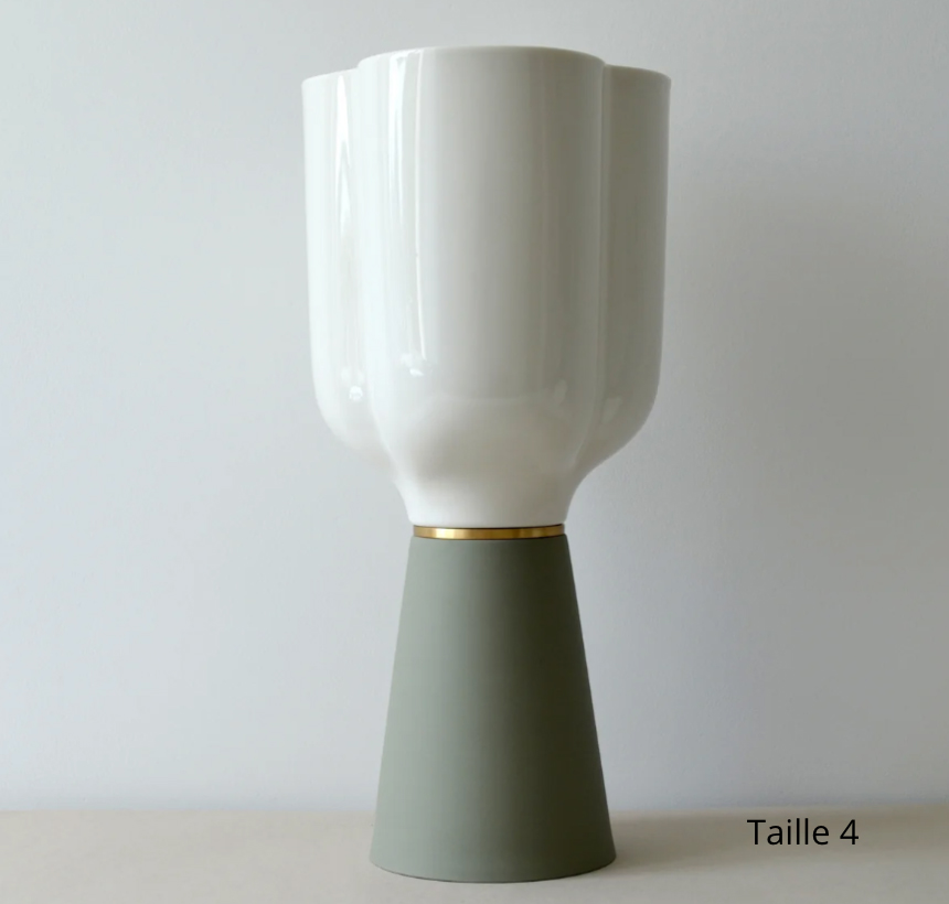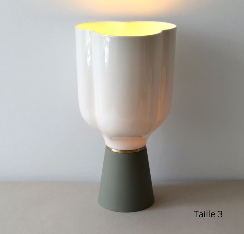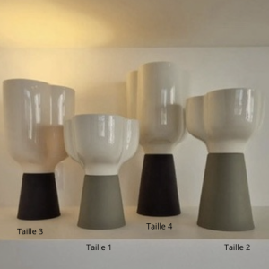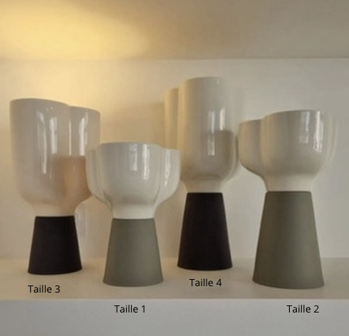 Disponible en quatre tailles, cette lampe s’adapte à tous vos besoins : la plus petite taille est idéale pour un chevet, apportant une touche élégante et apaisante à votre chambre. La version plus grande trouvera parfaitement sa place sur un buffet ou un bureau, où elle deviendra une pièce maîtresse de votre décoration.
