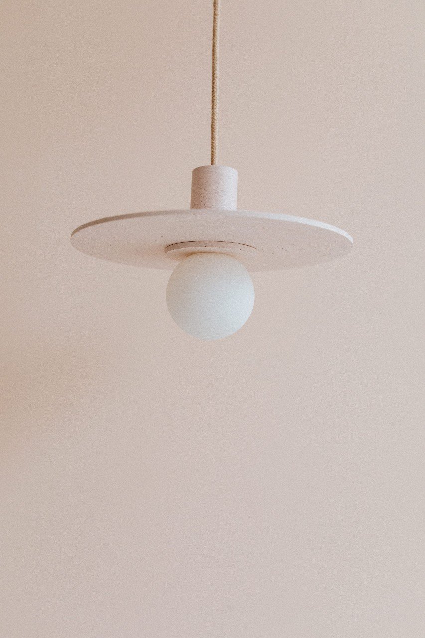 L’aspect peut varier légèrement d’un luminaire à l’autre : bulles, irrégularités. Ces effets de matière propres au béton font de chaque pièce une pièce singulière.