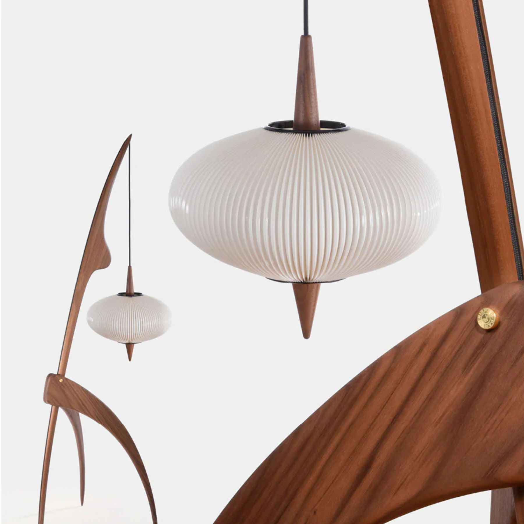 Comme elle l’a déjà fait par le passé, la mante religieuse s’est légèrement métamorphosée pour s’adapter à son époque en améliorant sa stabilité et sa qualité d’éclairage. La réédition de ce classique du design est désormais reconnaissable à son abat-jour très aérien, en forme d’ellipse, traversé par un fuseau de bois qui semble flotter au milieu.