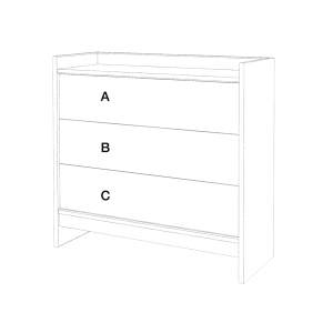 Modèle de commode présenté : tiroir A Selestat n°7, tiroir B Manoir n°6, Tiroir C Cheverny n°5