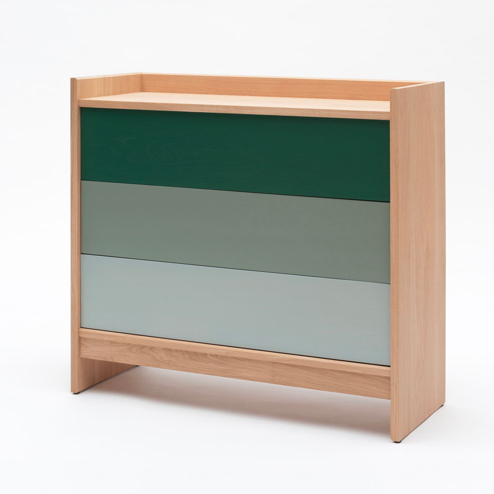 Commode Bric - Drugeot Manufacture - 3 tiroirs camaieu de vert - L'Inatelier Nantes - GENERIQUECommode en chêne BRIC – Drugeot Manufacture
