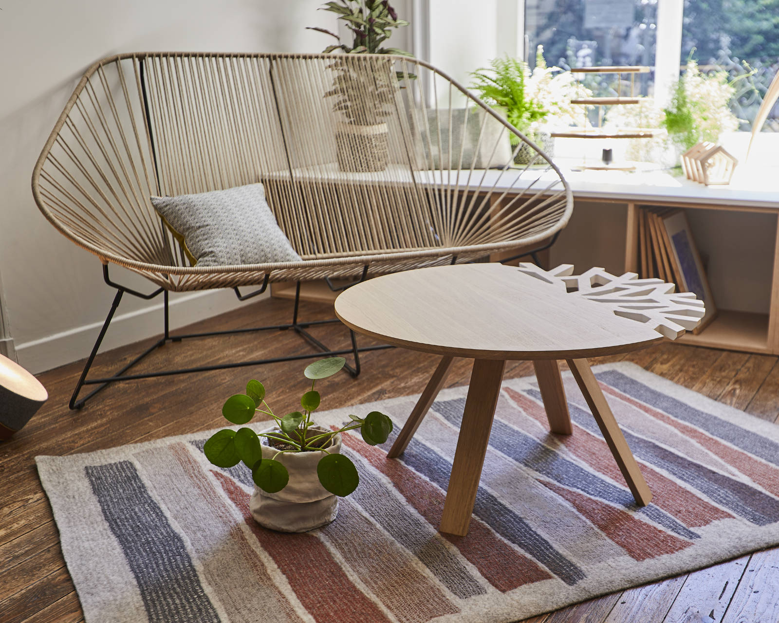La table basse naturelle en chêne massif Canopée incarne l’élégance de la nature. Son plateau ajouré, inspiré des jeux de lumière traversant les branchages, allie légèreté et originalité.