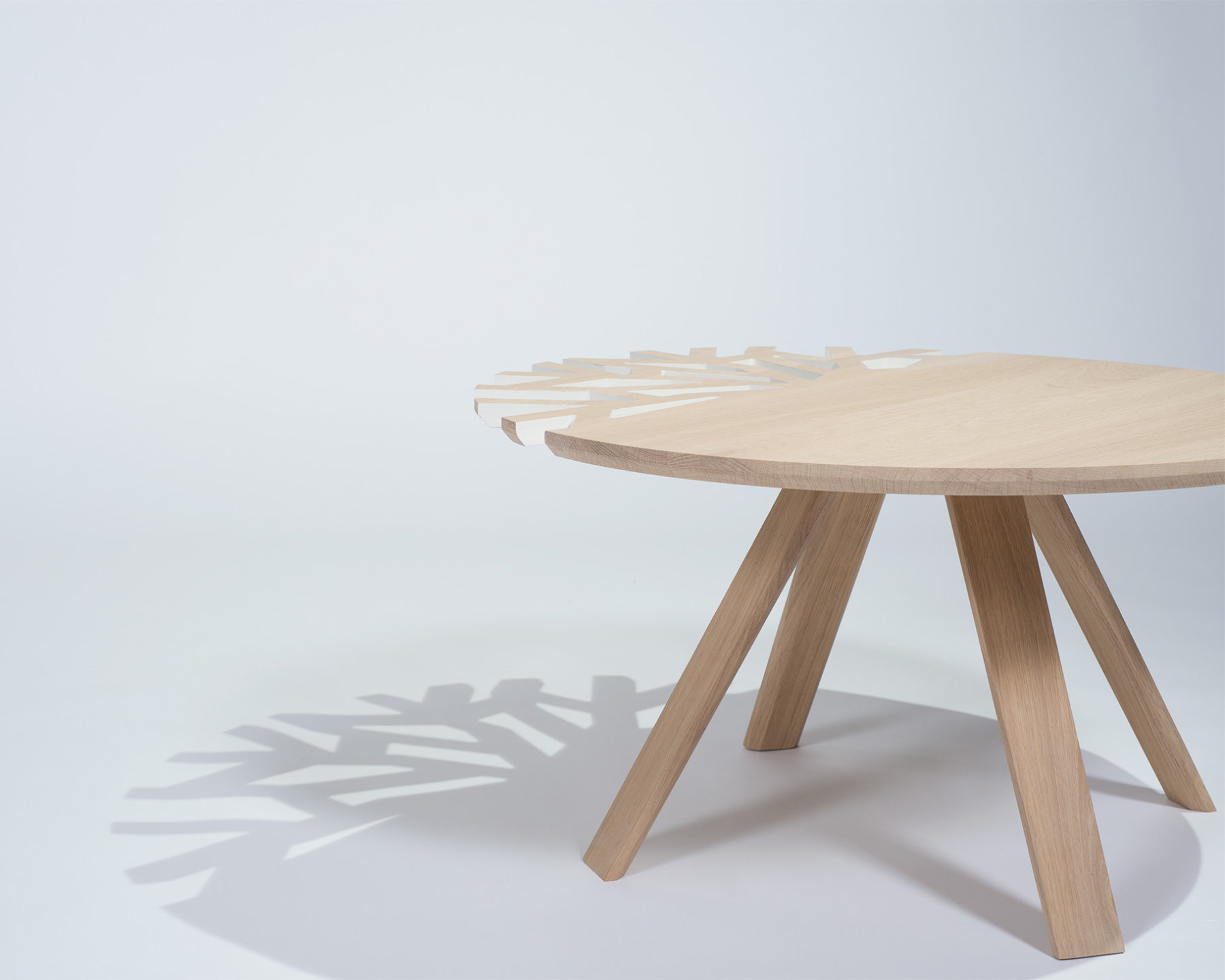 Campée sur ses 4 pieds, son plateau ajouré est inspiré des jeux de lumière à travers les branchages.