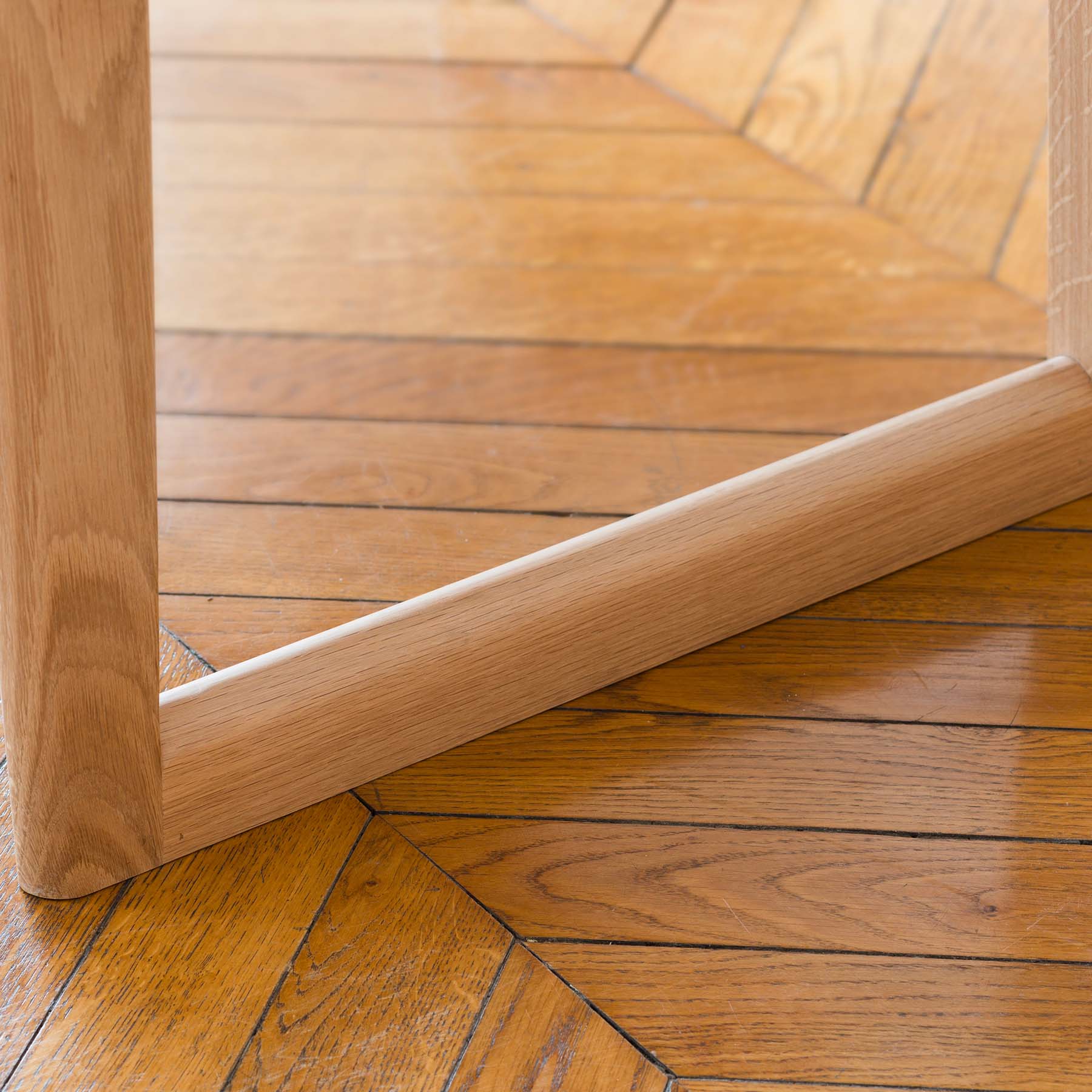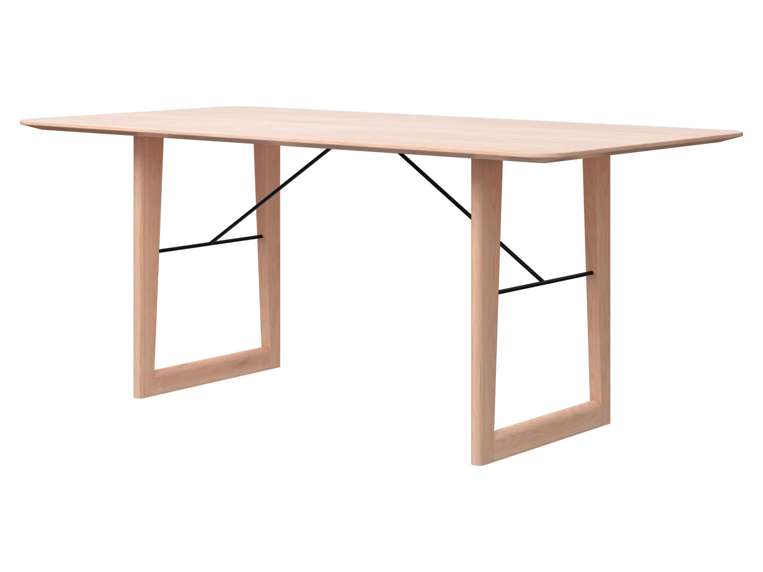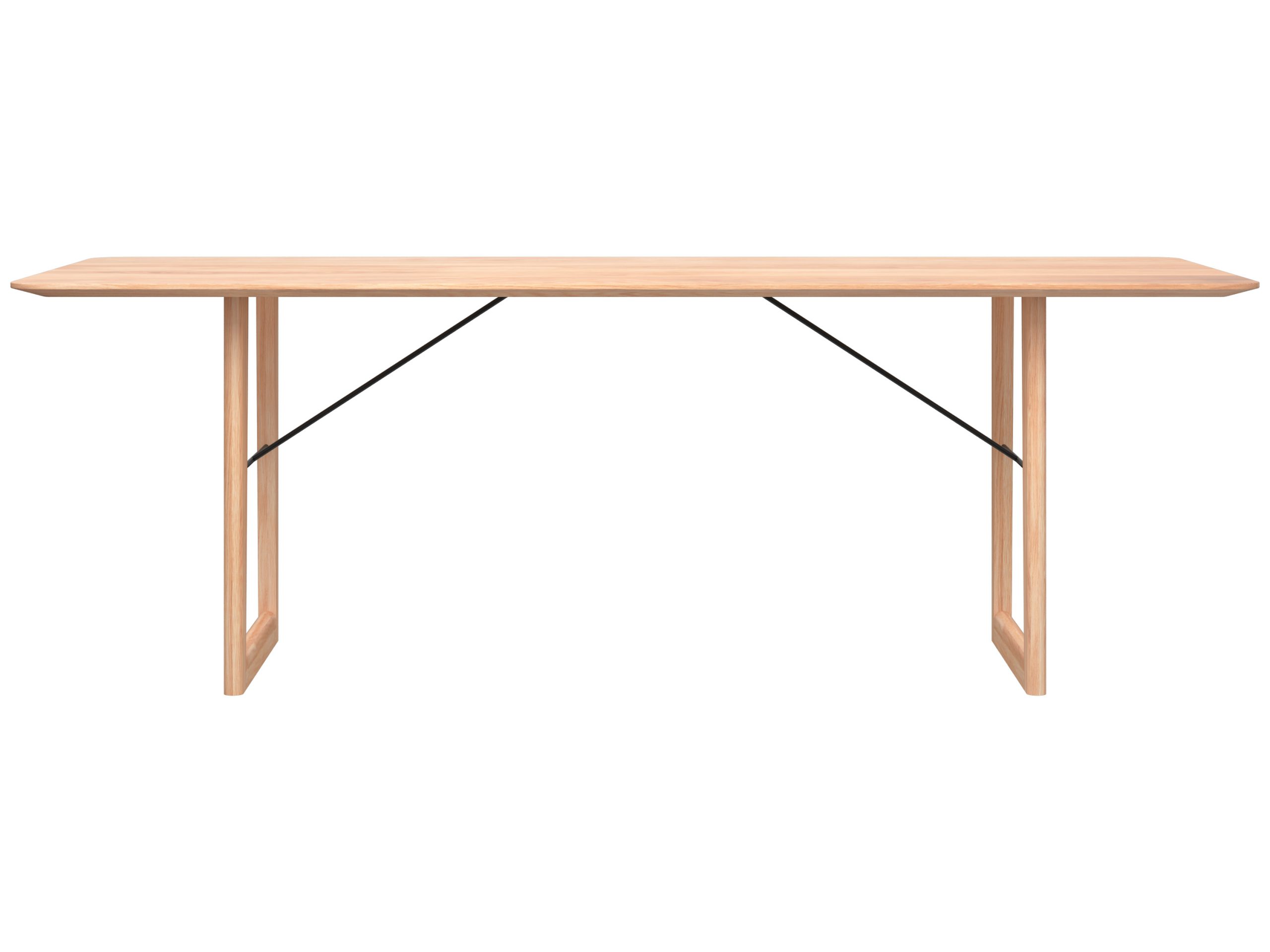 La table Cloe en métal et chêne massif est signée By Cactus. Son design aéré trouve son originalité dans son plateau aux bords profilés ainsi que ses pieds en forme de tréteaux.