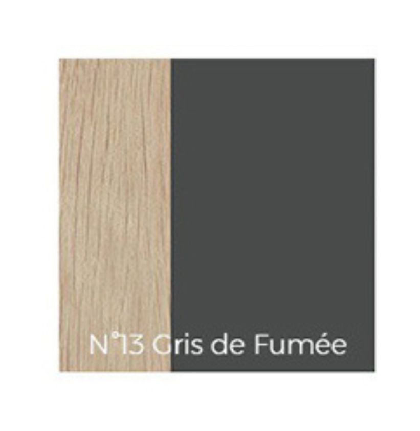 La table de salle à manger PARATI possède un double plateau avec un débord du plateau inférieur qui permet de poser téléphone, clés, et tout objet inutilisé pendant le repas. La ceinture entre les 2 plateaux est personnalisée avec une touche de couleur gris de fumée