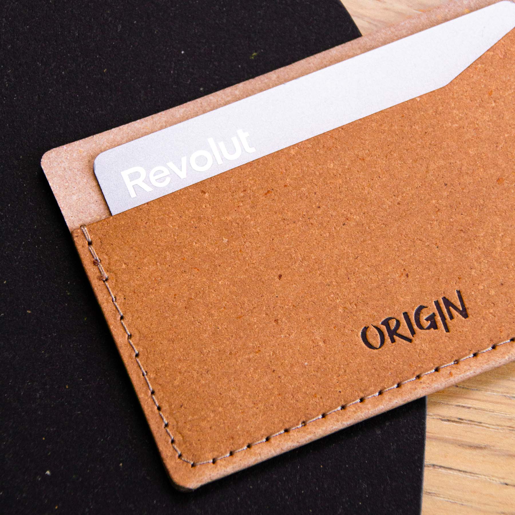 Produit en France par Maison Origin son cuir est unique, en effet ce porte-cartes a été conçu à base de chutes de cuir mélangé à du latex naturel, en complément un vernis naturel à base d’eau qui assure une protection du cuir et permet d’allonger la durée de vie du cuir ainsi que sa résistance. Sa matière reste douce au toucher tout en conservant l’odeur naturel du cuir.