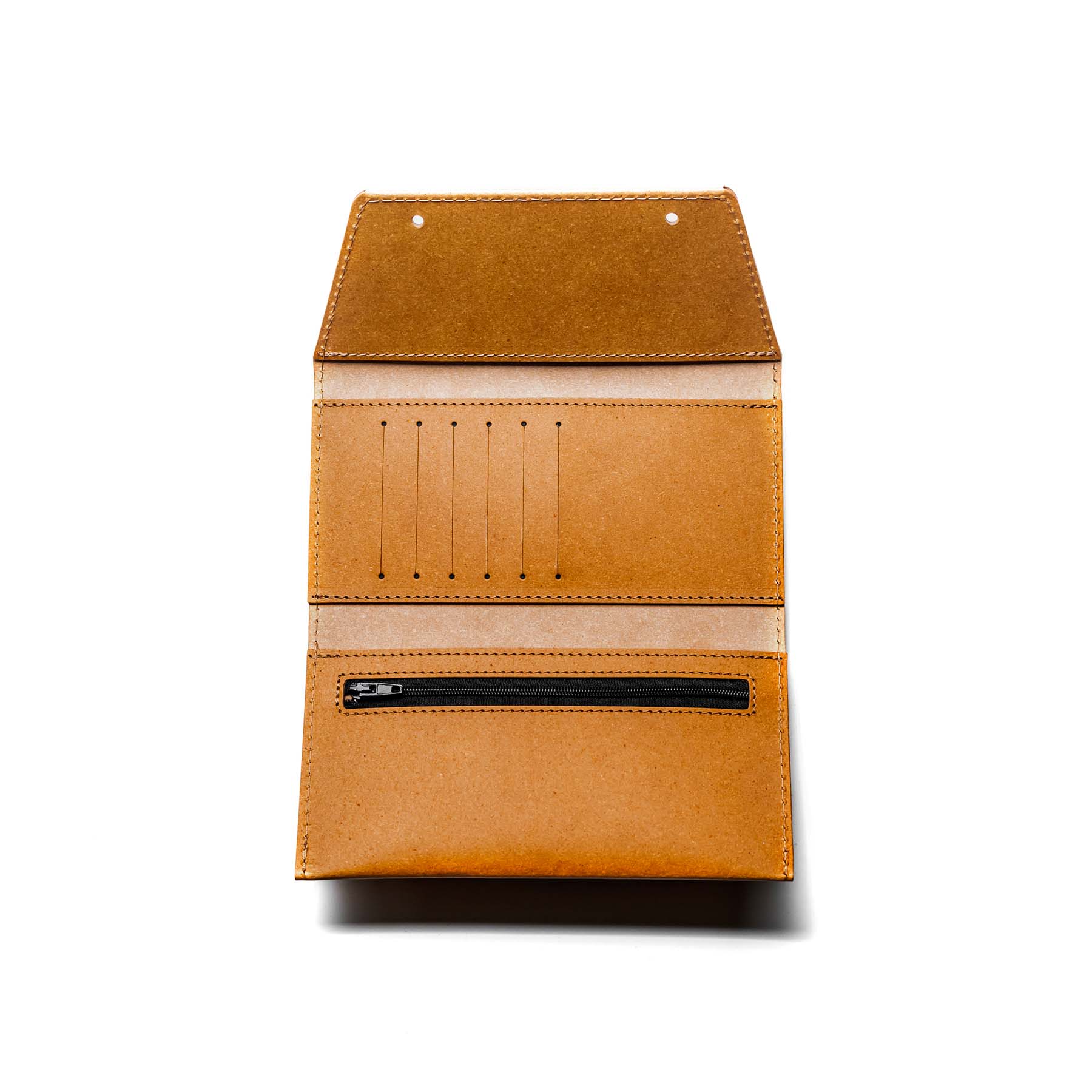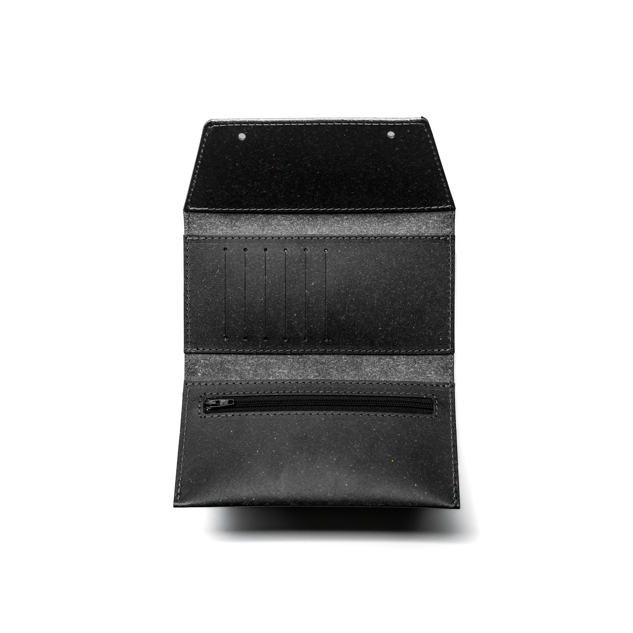 Ce portefeuille possède un cuir tout particulier car il s’agit d’un cuir recyclé. Cette matière est fabriquée à base de chutes de cuir, mélangées à du latex naturel. Une protection au vernis naturel à base d’eau permet d’allonger la durée de vie du cuir ainsi que sa résistance. Ce portefeuille spacieux offre ainsi un toucher doux et conserve même l’odeur du cuir naturelle.