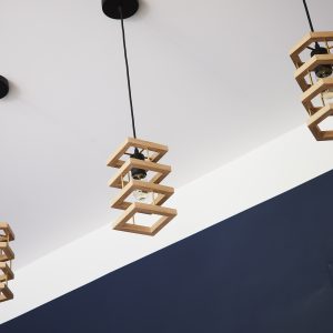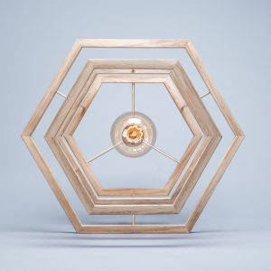 190,00 € Lire la suiteDes formes géométriques en chênes soutenues par de fins montants en laiton laissent apparaître une ampoule à filament vintage.